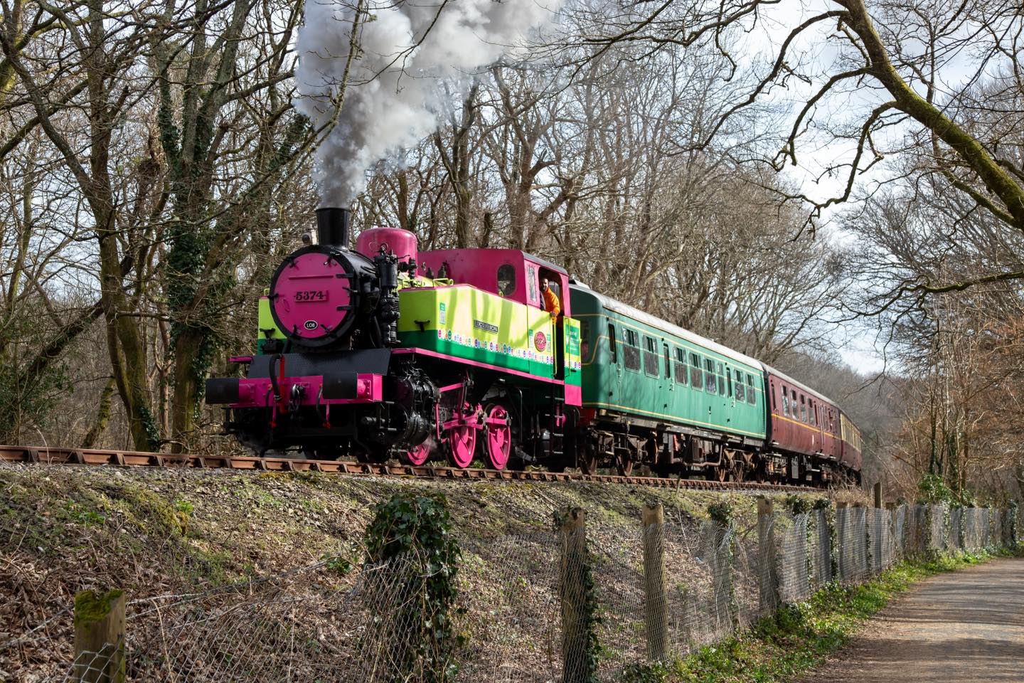 TKH 5374 of 1959 is a Fablok built steam locomotive. It arrived here at the Plym Valley Railway in November 2016 after a change in ownership and subsequent move from the Northampton and Lamport Railway where the locomotive was known as 'Vanguard'. The locomotive worked at a steelworks in Poland ‘Huta Ostrowiec’ alongside TKh 4015 ‘Karel’ which is also preserved in the UK at the Avon Valley Railway. During the 8 year long overhaul of the locomotive, the idea was created to paint it in unusual colours with the aim of raising funds for a charity. Oliver’s name was instantly mentioned and the wheels started to turn creating a plan that would create a lasting and powerful legacy. Now in traffic at the Plym Valley Railway, the locomotive was launched on what would have been Oliver's 17th birthday and was touchingly rededicated 'Lord Oliver Brown' a title Oliver had bestowed upon himself whilst in hospital. photos credit to D. Phillips and B. Mills on launch day.